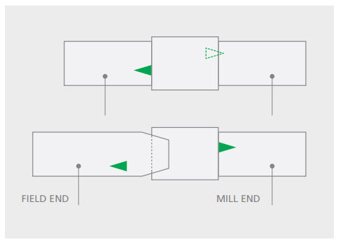 1. Connections must be clean and dry when applyingthread lock.2. Apply a thin coating of thread lock on 50% of thepin threads furthest from the pipe body.3. Do not apply thread compound to pin or box.Make Up1. API Buttress connection is designed to be made upto a final position, there is no final torque specified.2. Make up acceptance criteria is defined based on therelative position of the coupling face compared to thetriangle stamped on the pin end:.Minimum Make up: One full thread turn beforetriangle base..Maximum Make up: Triangle apex.